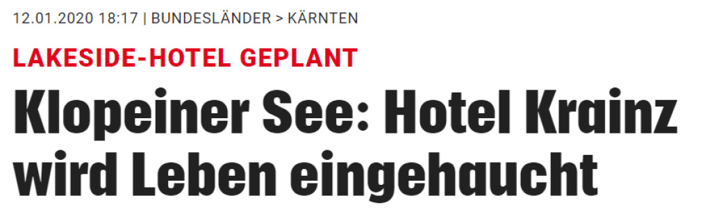 Klopeiner See: Hotel Krainz wird Leben eingehaucht
